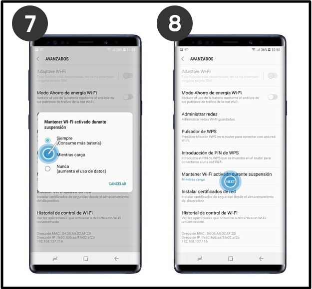 ¡Listo!, así podrás configurar la función de Mantener Wi-Fi activado durante suspensión.
