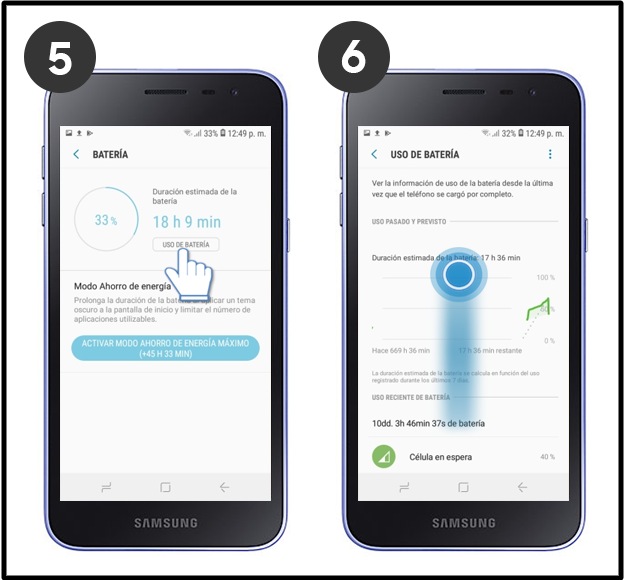 ¿Cómo ver el uso de la batería en tu Galaxy J2 Core?