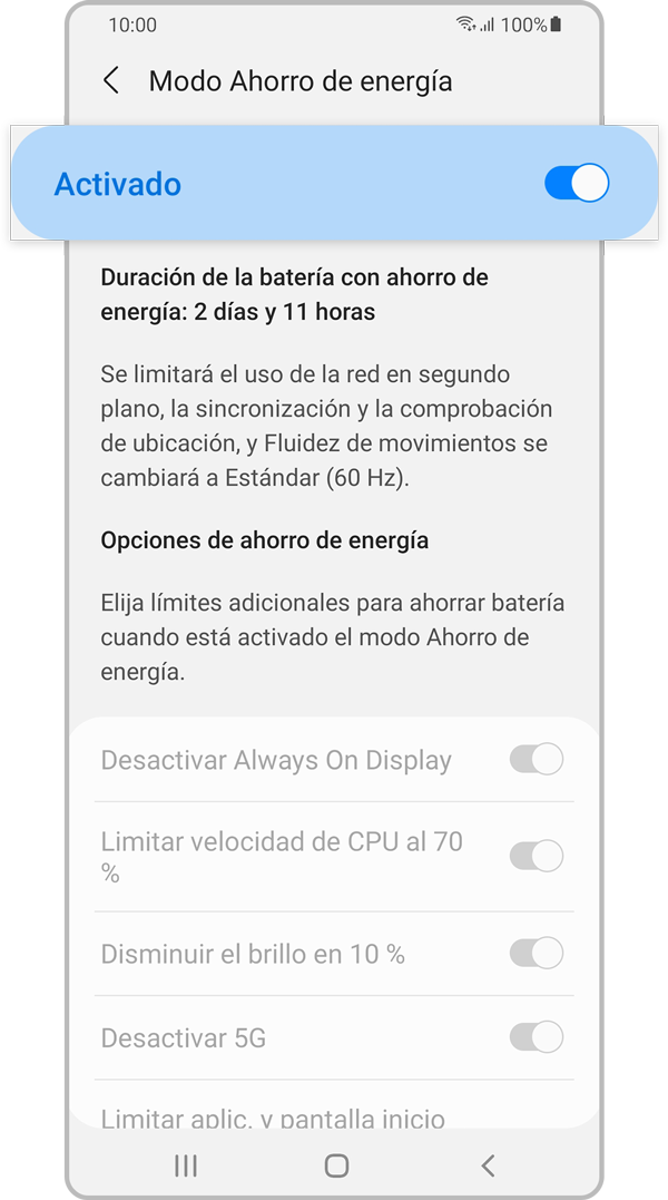 Si la pantalla de tu teléfono se ve más oscura o en escala de grises, es posible que tengas habilitado el modo de ahorro de energía. El modo de ahorro de energía conserva la energía de la batería al reducir el brillo de la pantalla, cambiar la escala de grises, limitar el rendimiento de la CPU y desactivar la respuesta de vibración. Sigue los pasos a continuación para desactivar el modo de ahorro de energía.
