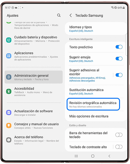 El corrector ortográfico es una función con la que dispone el teclado de tu Galaxy Z Fold3, si la activas esta función corregirá las palabras que escribas de manera incorrecta.