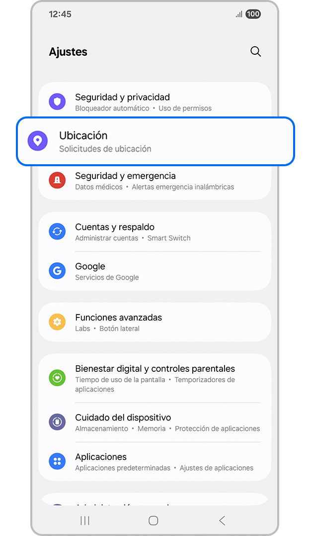 Ve a Ajustes y selecciona Aplicaciones. Luego elige la aplicación para la que deseas habilitar la ubicación y pulsa en Permisos. Luego selecciona Ubicación y pulsa Permitir todo el tiempo, o Permitir sólo con la app en uso.