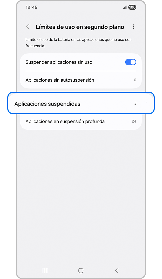 Si se agrega una aplicación que usa el GPS a la lista Aplicaciones suspendidas, tu dispositivo desactivará dichos servicios de GPS. Simplemente puedes eliminar la aplicación de la lista siguiendo los pasos a continuación: