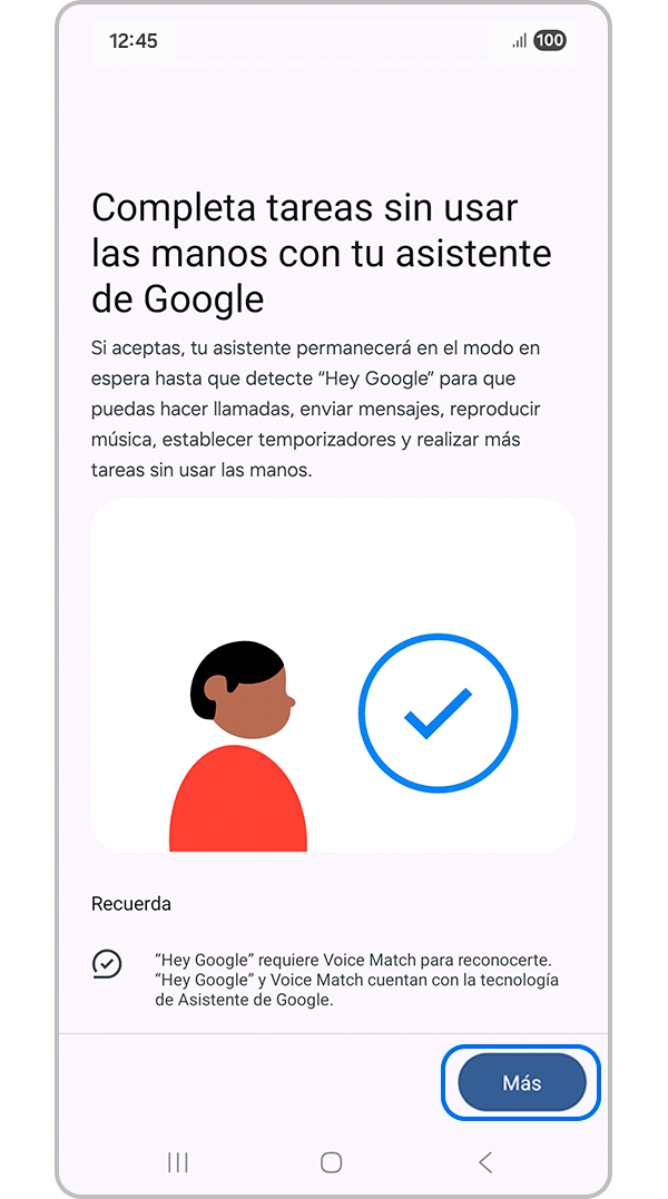 Nota: Google Assistant es compatible con teléfonos Galaxy con Android 5.0 o superior. No es compatible con la acción sin interrupción entre aplicaciones.