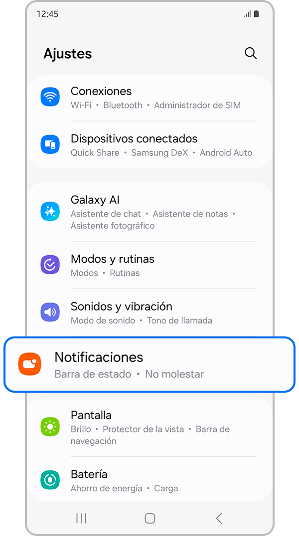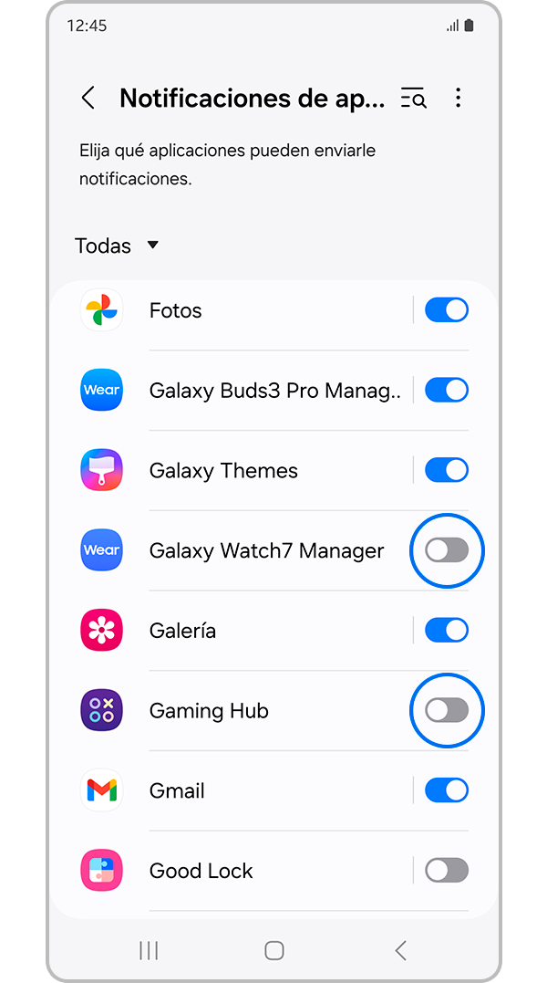 Para ahorrar batería, desactiva las notificaciones de las aplicaciones que no utilices o que no desees recibir notificación.