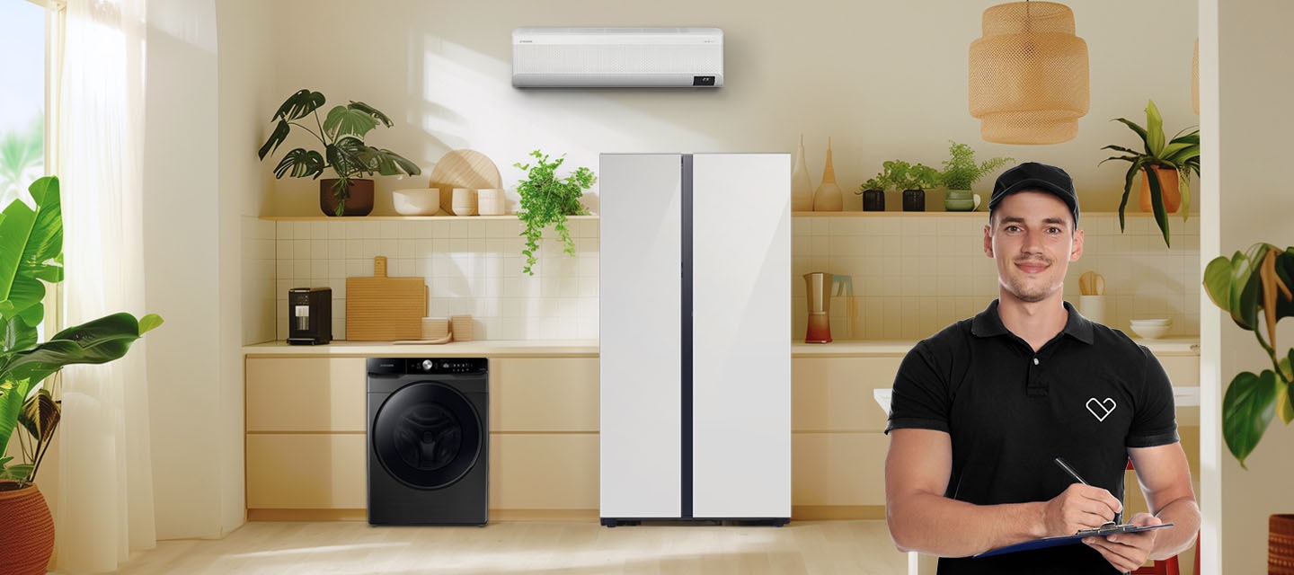 Con Samsung Care + tienes acceso a Dos (2) Mantenimientos , Una Instalación inicial y Una segunda instalación