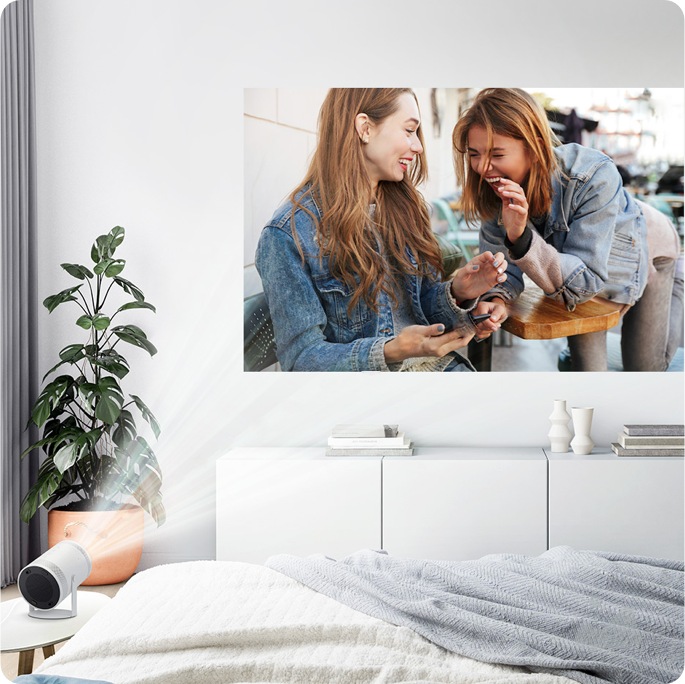 Lleva tu entretenimiento dondequiera que vayas con The Freestyle. Un proyector portátil que alcanza hasta 100 pulgadas¹ de proyección en paredes, pisos, mesas y otras superficies, con un diseño revolucionario, fácil de instalar y con posibilidades infinitas para transmitir contenido.