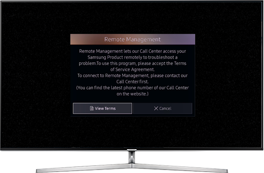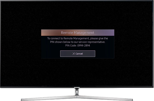 Can Samsung access my device at anytime?No, the Remote Service system only allows Samsung to connect to your device for a single session. Once the connection is terminated Samsung cannot reconnect without a new PIN being generated by you. Powering off the TV will also terminate any session immediately.