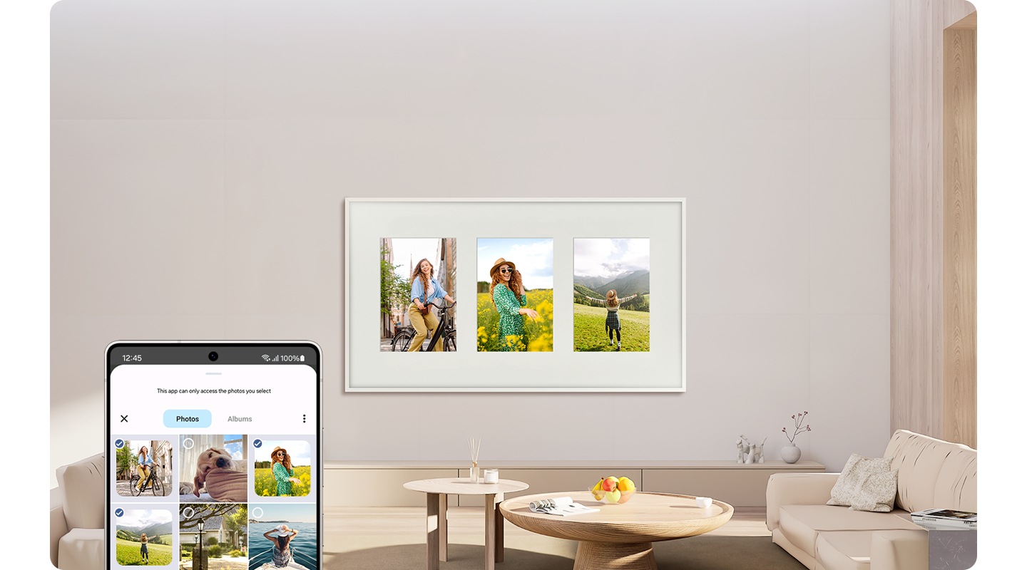 Zavzpomínej si na oblíbené momenty nebo oživ rodinný portrét z Fotek Google na smart televizoru The Frame Pro. Jednoduše sdílej fotografie přes aplikaci SmartThings a ve zlomku vteřiny proměň svůj interiér.