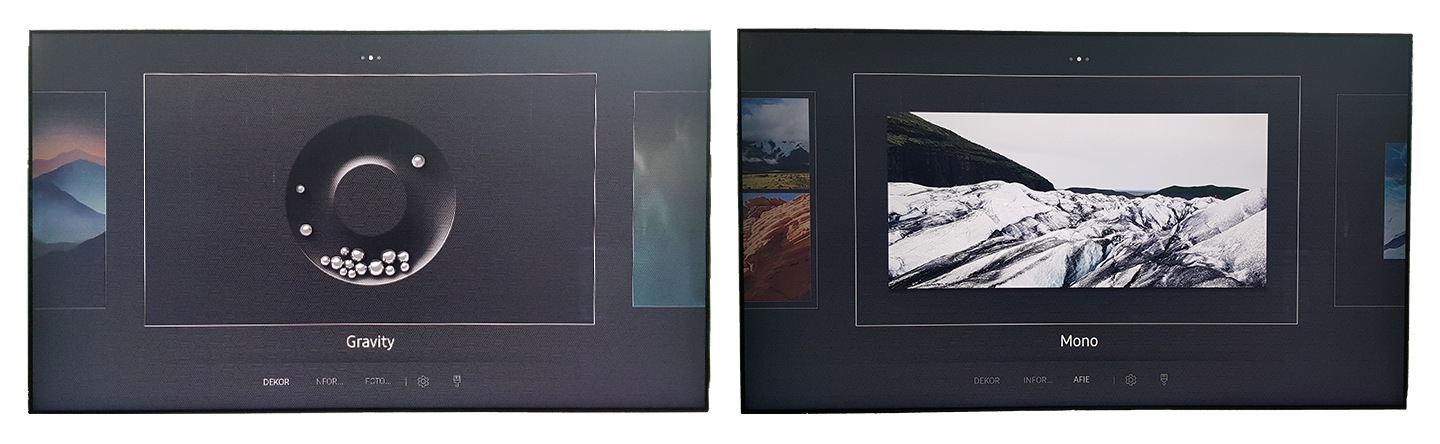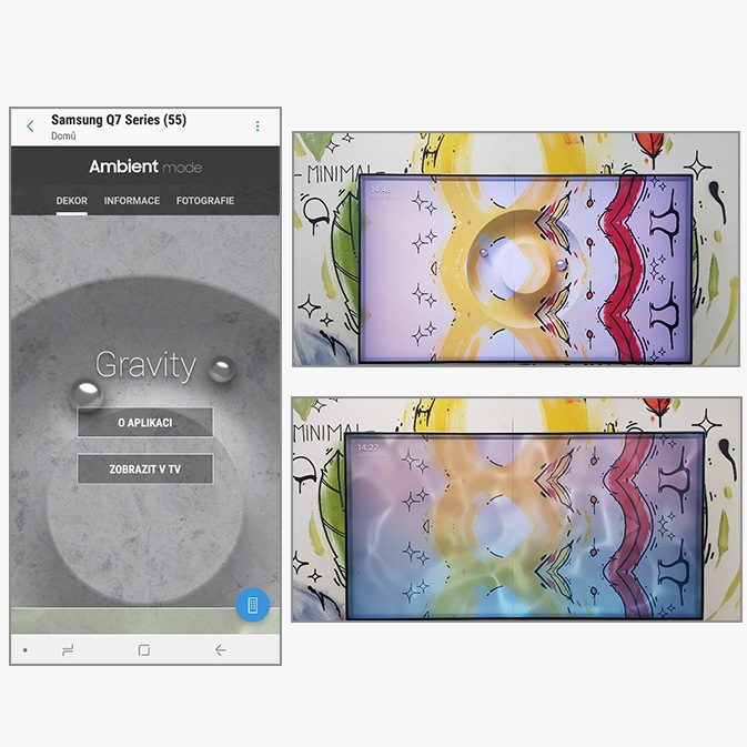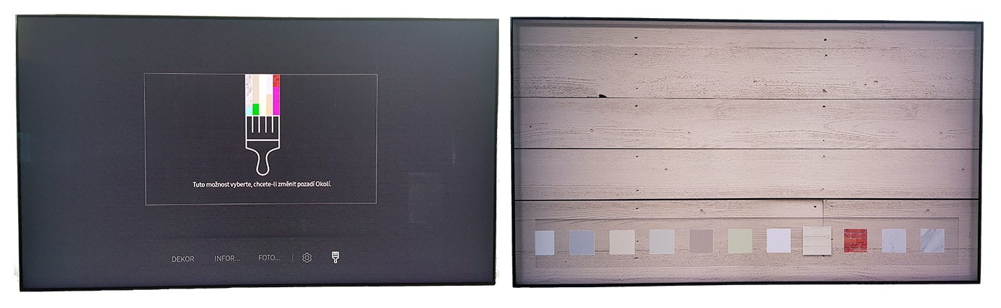 V nejvyšších řadách televizorů Samsung QLED (platí pro modely QLED 2018) si můžete nastavit interaktivní pozadí, takže i v okamžiku, kdy není TV zapnutá, nezůstane na zdi černý obdélník, ale obrazovka splyne s okolní stěnou.