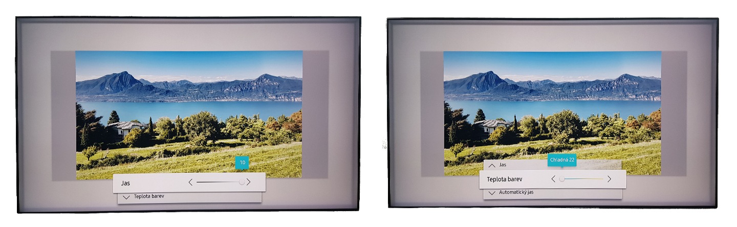 Úpravu jasu a barevnosti provedete opět z Menu, kam se dostanete stisknutím tlačítka Zpět na dálkovém ovladači.