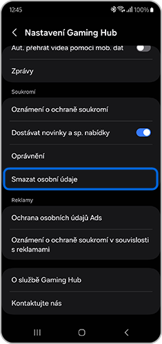 Chcete-li z aplikace Gaming Hub odstranit své osobní údaje, postupujte podle níže uvedených kroků.