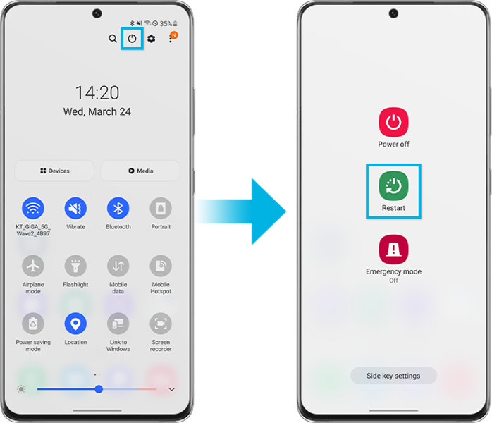 Krok 2. Klepněte na ikonu Napájení, a poté vyberte Restartování.
