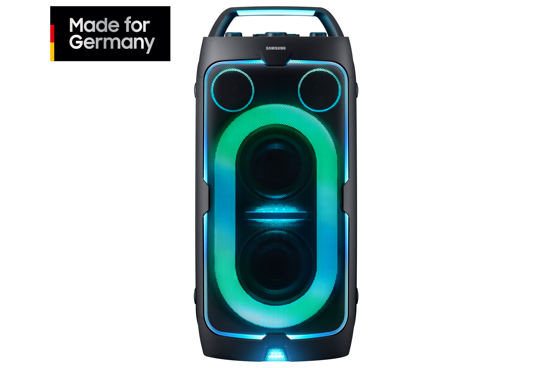 240 Watt für volle PowerAufdrehen und los geht’s! Satte 240 Watt Sound mit tiefem, dynamischem Bass bringen jede Party richtig in Fahrt. Egal, ob drinnen oder draußen: Dieser große Party-Lautsprecher sorgt für mächtig Stimmung und non-stop gute Laune.