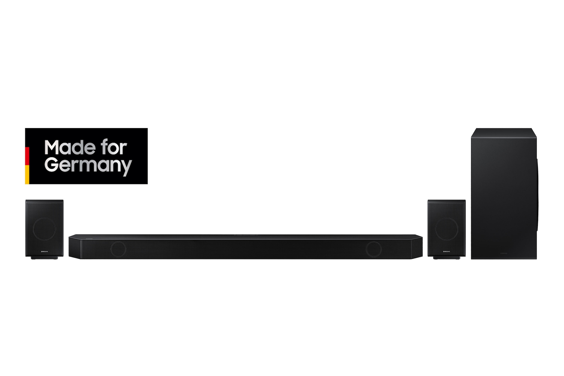* Neu ab 2022: Q-Symphony benutzt nun alle Lautsprecher des Samsung TVs, statt zuvor nur die oberen TV Lautsprecher.** Q-Symphony ist mit ausgewählten Samsung-Fernsehern von 2020, 2021 und 2022 kompatibel.