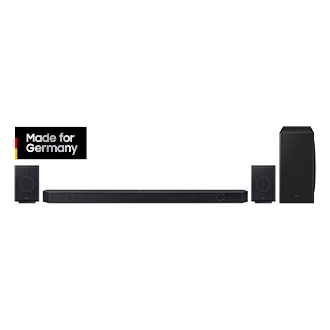¹ Q-Symphony ist nur mit bestimmten Samsung TV-Geräten kompatibel. Eine vollständige Liste der kompatiblen Modelle findest du unter samsung.de ² Erfordert eine HDMI-, optische oder Wi-Fi-Verbindung zum Fernseher.