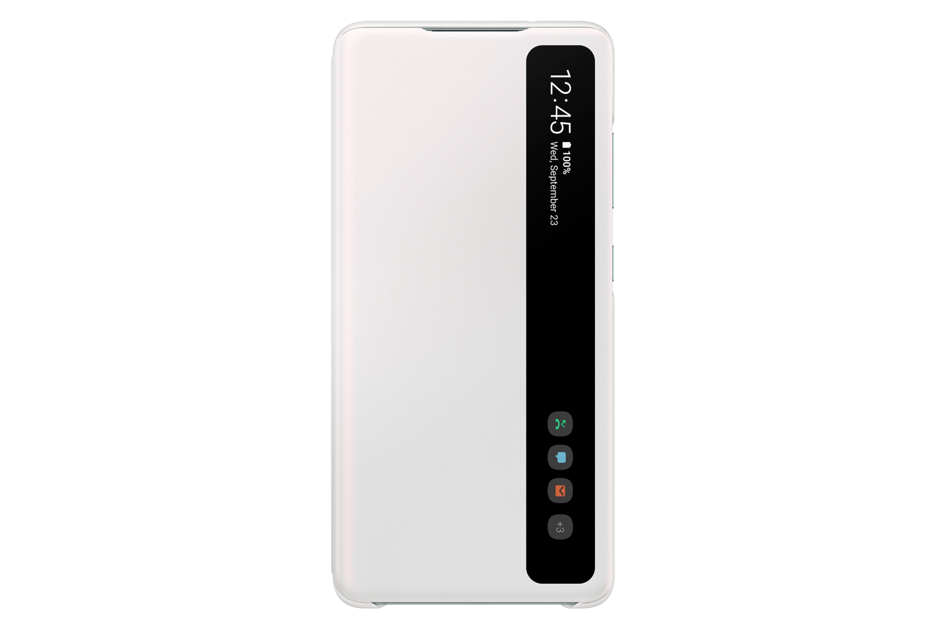 Über das seitliche Sichtfenster kannst du dein Galaxy S20 FE nutzen, ohne das Cover öffnen zu müssen. Nimm Anrufe an oder lehne sie ab, bleib über Benachrichtigungen auf dem Laufenden oder überprüfe den Akkustatus – alles ganz bequem.
