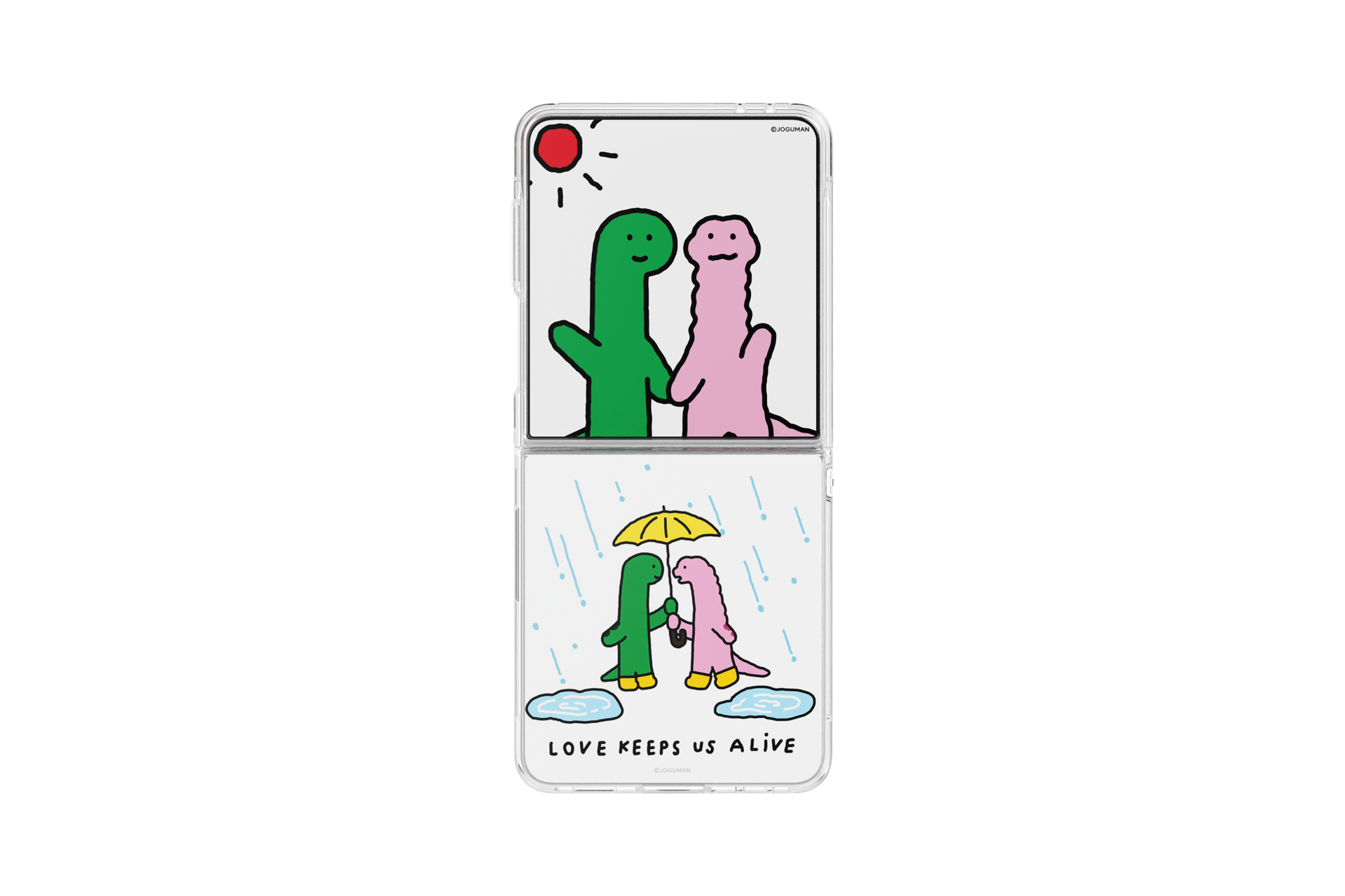 Schöpfe im Alltag neue Energie dank JOGUMANs verspieltem und unverwechselbarem Design. Eigens für das Galaxy Z Flip7 entwickelt, um JOGUMANs einzigartige Persönlichkeit einzufangen.1