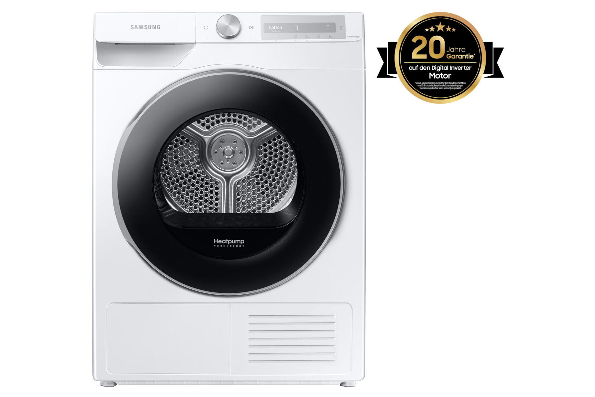 Freue dich auf hohe Effizienz, niedrige Geräuschentwicklung und eine lange Lebensdauer. Der Digital Inverter Motor setzt starke Magnete ein, um leiser** aber leistungsstark zu trocknen. Dabei verbraucht er wenig Energie*** und ist so verschleißarm, dass wir auf den Digital Inverter Motor eine Garantie von 20 Jahren geben.*