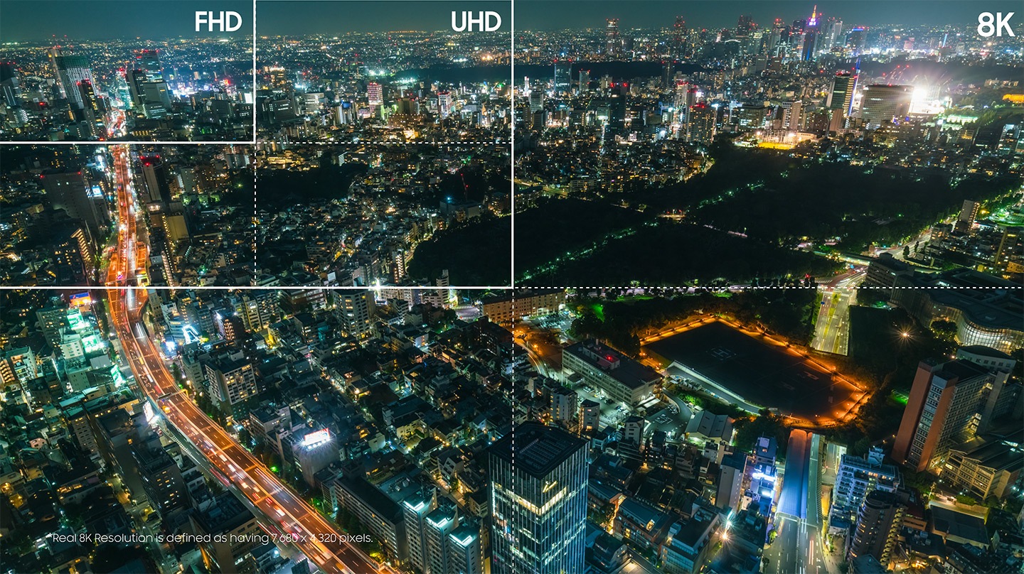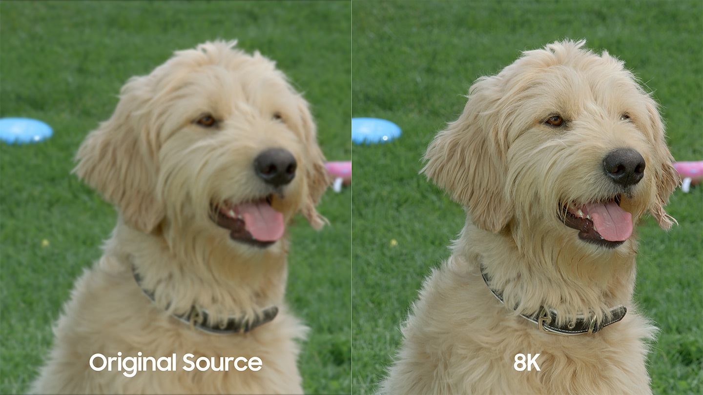 Ohne das smarte Upscaling würde ein TV lediglich die vorhandenen Pixel „vergrößern“. Das ergäbe bei 4K Inhalten zwar noch immer ein tolles Bild, doch schafft AI-Upscaling von Samsung bei diesen 4K Inhalten ein Erlebnis, das nativen 8K Inhalten, die von Anfang an in 8K Auflösung gedreht wurden, nahe kommt.