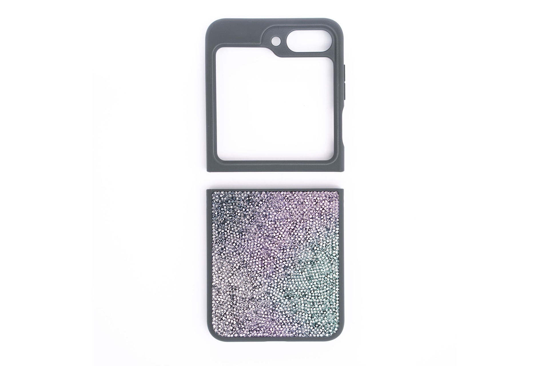 Peppe deinen Alltagslook mit diesem aufsehenerregenden zweiteiligen Case auf und sorge so für einen unvergesslichen Auftritt. Das exklusive Swarovski® Crystal Case ist mit Swarovski® Kristallen verziert und passt perfekt zu deinem Galaxy Z Flip5.
