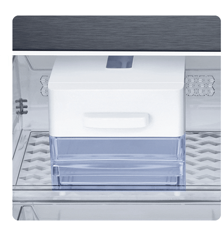 An warmen Tagen schön kühl bleiben: mit der herausnehmbaren Eiswürfelschale kann man einfach Eiswürfel herstellen und entnehmen. Dafür wird die Schale vorher manuell mit Wasser befüllt. Sollte sich der Bedarf an Eiswürfeln durch veränderte Jahreszeiten ändern, kann die Eiswürfelschale einfach entnommen werden und kann somit Platz für Vorräte im Gefrierfach schaffen.