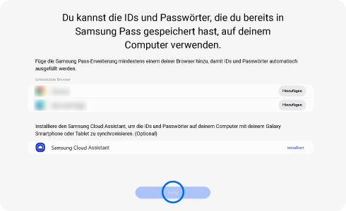 Für die Erweiterung musst du denselben Samsung Account nutzen wie Samsung Pass für PC.