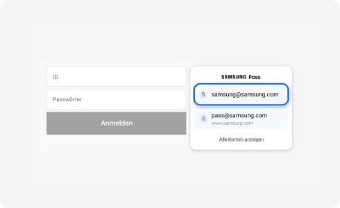 Jetzt brauchst du dich nicht mehr an deine Anmeldeinformationen zu erinnern, auch nicht auf deinem Samsung PC. Mit Samsung Pass kannst du dich schneller und einfacher anmelden. Die auf dem Mobiltelefon und dem Tablet verwendeten Anmeldeinformationen können synchronisiert und auf deinem Samsung PC verwendet werden.