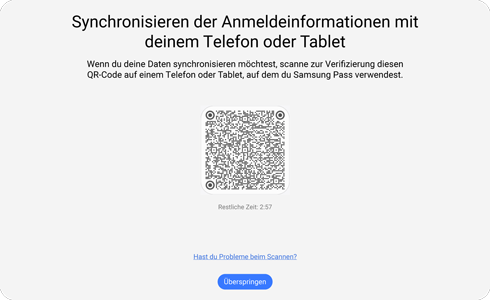 - Wenn du diesen Schritt jetzt überspringst, kannst du den QR-Code später immer noch scannen, indem du die Samsung Pass-Einstellungen auf deinem PC aufrufst.