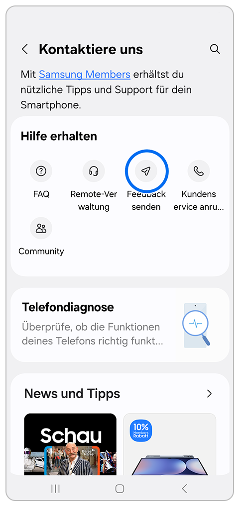 Stellst du während der Nutzung von Samsung Pay ein Problem fest und findest hierzu keine Lösung im Support-Bereich der Samsung Wallet App, hast du jederzeit die Möglichkeit, uns einen Fehlerbericht zu senden. Hierfür benötigst du zusätzlich die Samsung Members App auf deinem Smartphone.