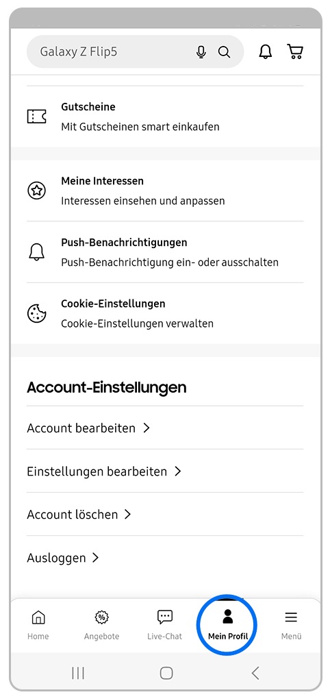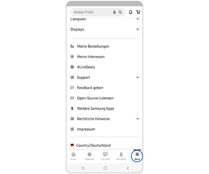 Hinweis: Zur Verwendung der Samsung Shop App ist ein Samsung Account erforderlich.