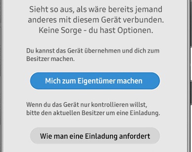 Ist es immer noch das Gerät des vorherigen Nutzers und bittest du um die Erlaubnis, sein ganzes SmartThings-Zuhause zu verbinden (nicht nur dieses Gerät), wähle Wie man eine Einladung anfordert. Dadurch wird die Einrichtung gestoppt und du erfährst, was der Verwalter des SmartThings-Zuhauses tun muss, damit er dir eine Einladung schickt.