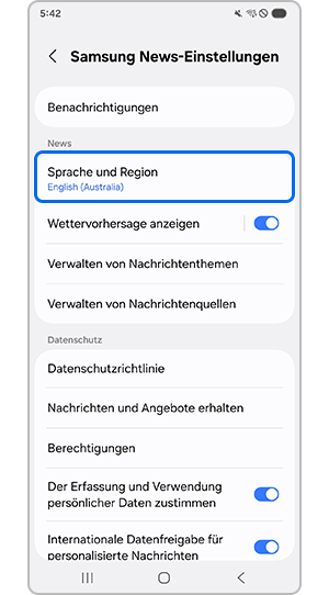 1. Öffne Samsung News > Einstellungen.