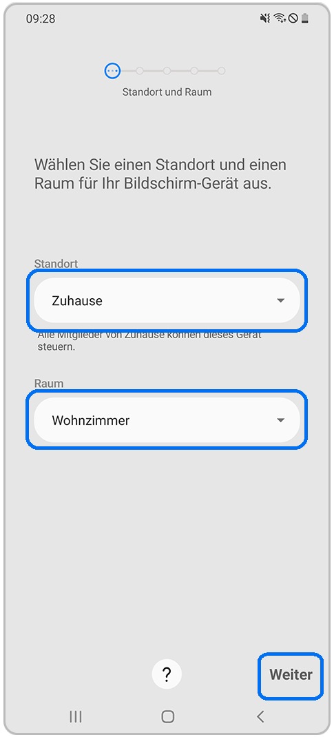 - Wähle Standort und Raum für die Soundbar aus und tippe auf Weiter.