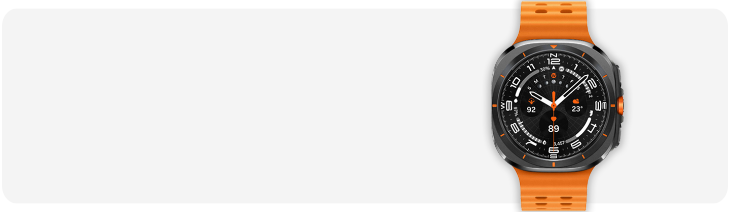 Das Gehäuse aus Titan hält einem Wasserdruck von bis zu 10 ATM stand. So ist die Galaxy Watch Ultra der ideale Begleiter für Outdoor Aktivitäten. Der leistungsstarke Akku hält im Energiesparmodus bis zu 100 Stunden. So hast du stets noch Energie für eine Extrarunde am Handgelenk.
