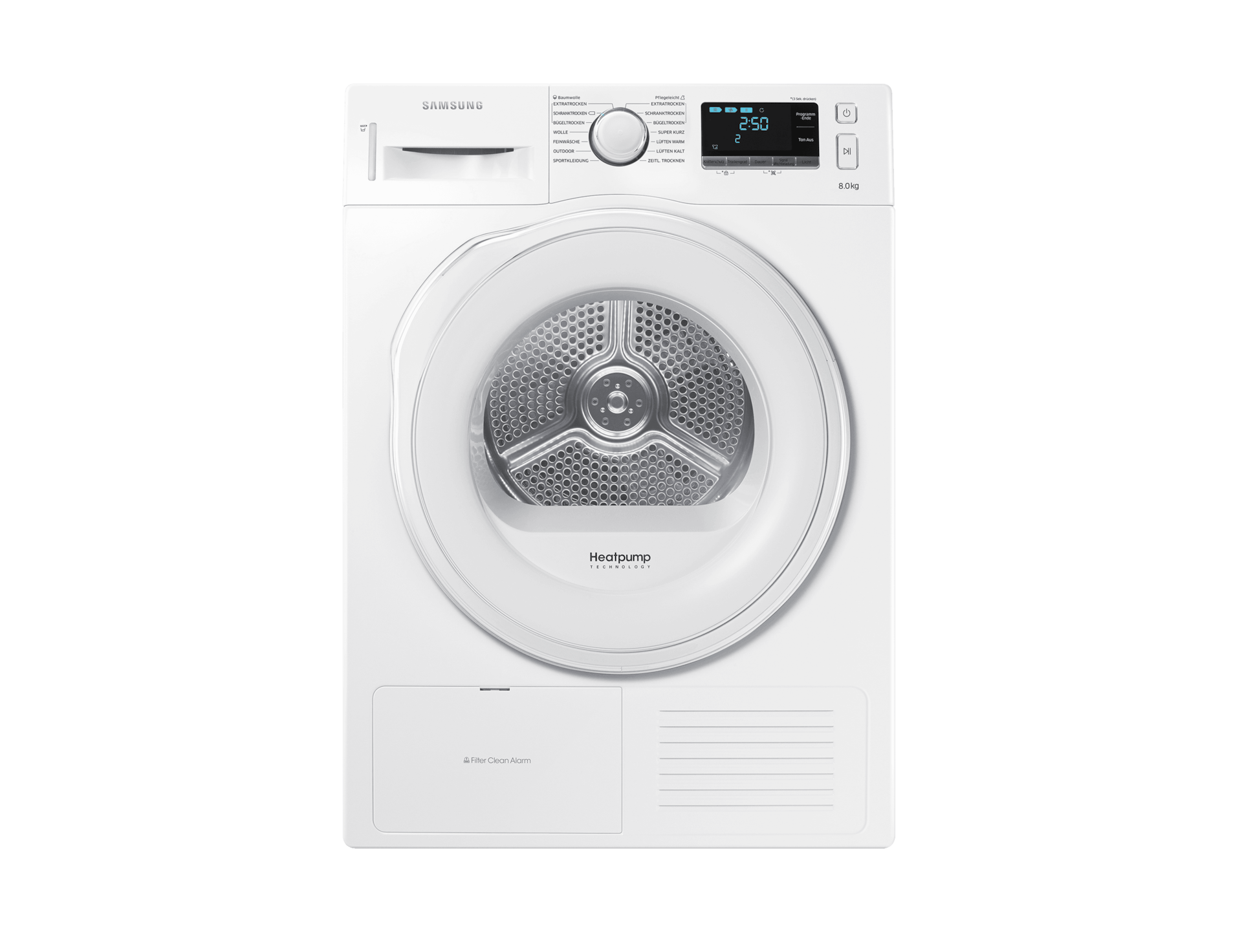 Der Samsung Heatpump-Wäschetrockner mit seiner Wärmepumpentechnologie trocknet Ihre Kleidung effizienter, günstiger und sanfter. Das Gerät entspricht der Energieeffizienzklasse A++ und verwendet zum Erhitzen der Luft ein „Kühlmittel“ statt Elektrizität. Es verbraucht also beträchtlich weniger Strom als herkömmliche Kondensationstrockner und hat dank Luftumwälzung zur Energieeinsparung eine bessere Gesamtleistung.