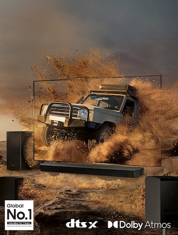 Effektfuld synergi mellem Samsung TV og Samsung Soundbar. Optimeret, klar lyd fra soundbaren, der skaber en helhedsoplevelse, baseret på analysen foretaget af dit Samsung-TV.