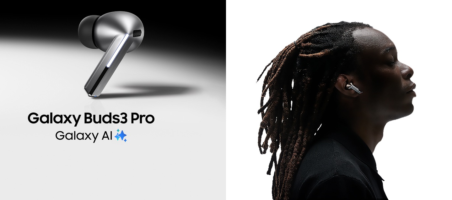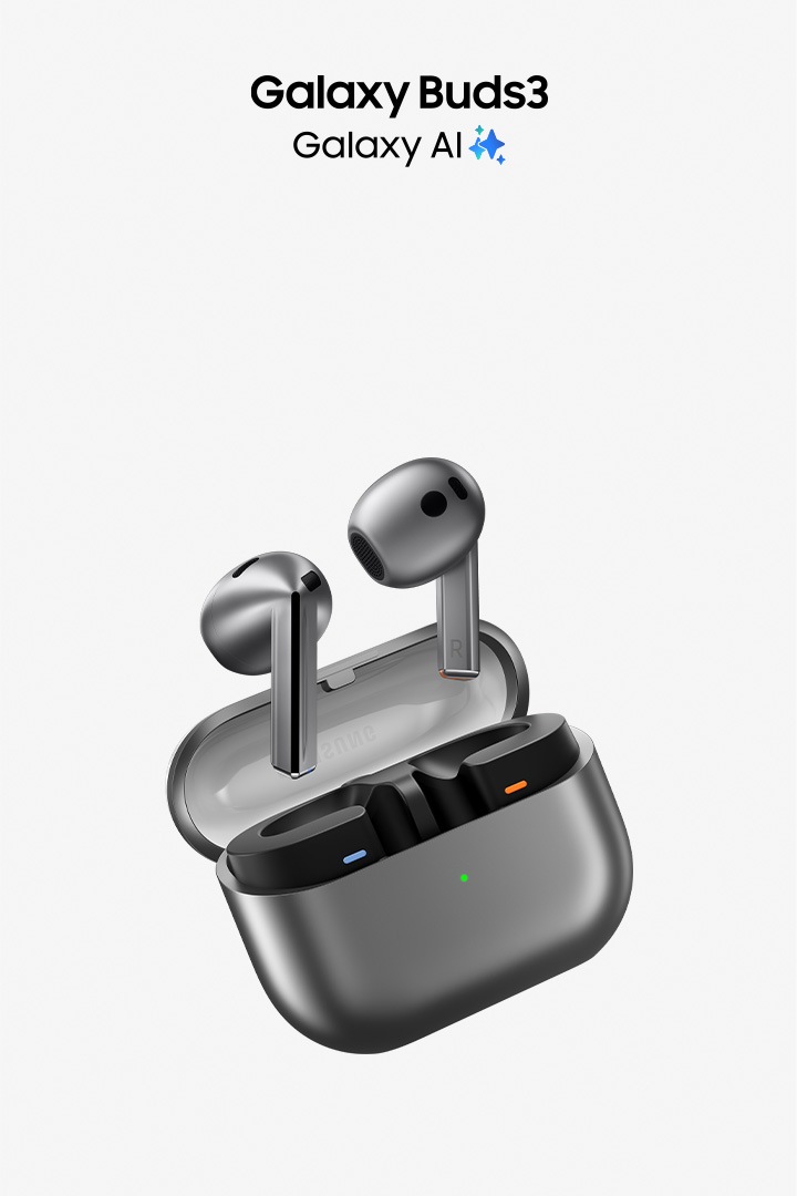 Billedet er simuleret. Tilgængelige farver på Galaxy Buds3 Pro kan variere alt efter land eller udbyder. Galaxy Buds3 Pro understøtter Galaxy AI-funktioner såsom Interpreter og Live Translate, når de parres med kompatible Samsung Galaxy-enheder. Tilgængelighed af Galaxy AI-funktioner kan variere alt efter modeller. Se samsung.com for flere detaljer.