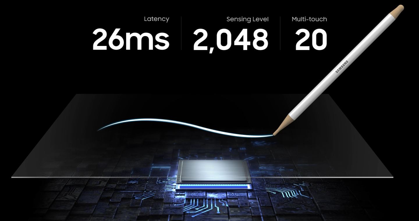 Produktivitet uden begrænsninger. Takket være den hurtigste og mest avancerede touch-teknologi, Samsung nogensinde har introduceret, kan du nemt bruge din finger eller stylus til at skabe en tilfredsstillende tegneoplevelse.