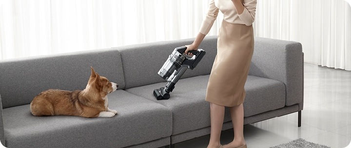 Når det kommer til rengøring af kæledyrshår, er sugeevne altafgørende. Samsung-støvsugere er udstyret med indbygget Jet Cyclone og Digital Inverter Motor. Disse arbejder sammen for at give en kraftig sugeevne, der effektivt suger kæledyrshår, støv og snavs op fra alle overflader, inklusive tæpper, trægulve og fliser.