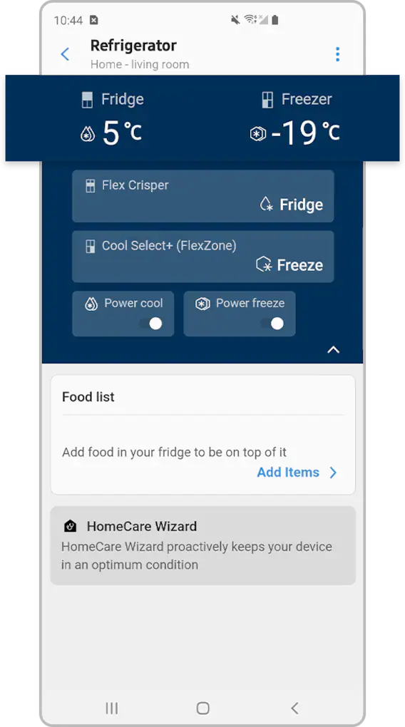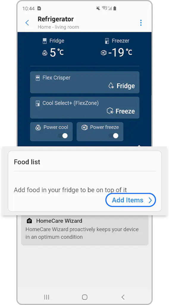 Tilslut dit Samsung-køleskab til SmartThings-appen, og administrer det med blot et tryk på en finger. SmartThings-appen kan hjælpe dig med at styre køletemperaturen og finde de mest effektive måder at holde din mad frisk på.