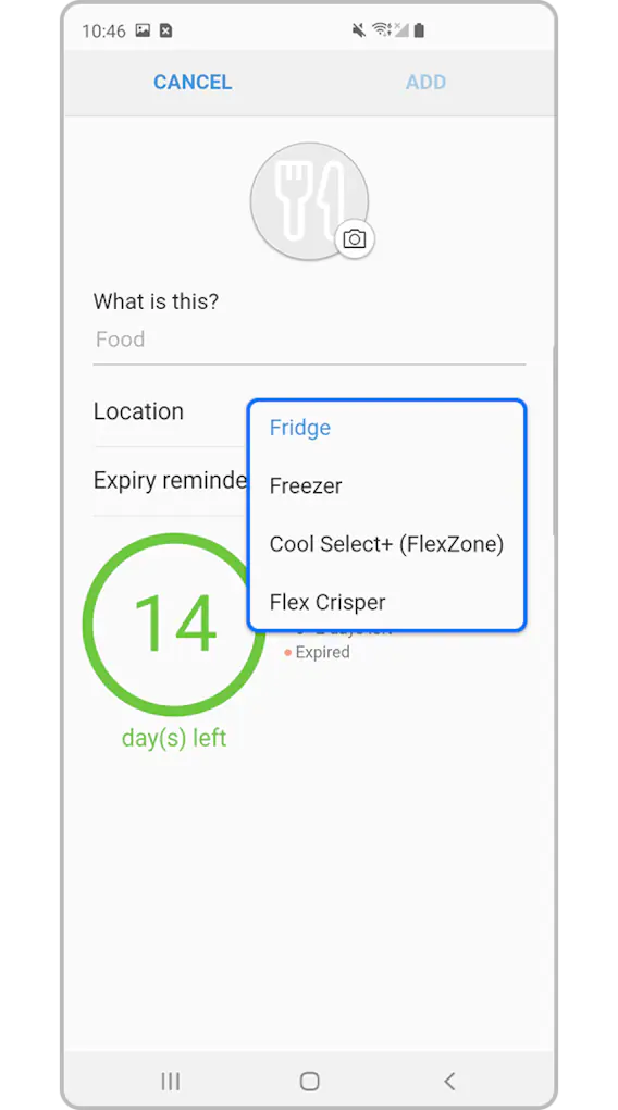 Tryk på køleskabskortet, og tryk på de 3 prikker øverst til højre på skærmen for at administrere de grundlæggende indstillinger.