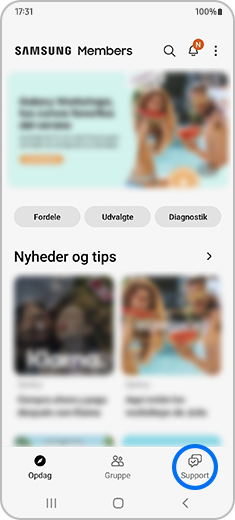 Hvis der efter testen er problemer med, hvordan din smartphone fungerer, kan du indberette det fra Samsung Members-appen som følger: