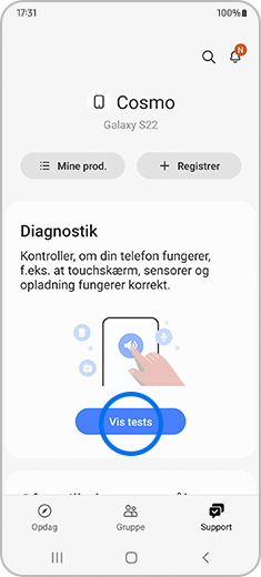 Bemærk: Du skal bekræfte din Samsung-konto for at kunne bruge diagnosefunktionen.
