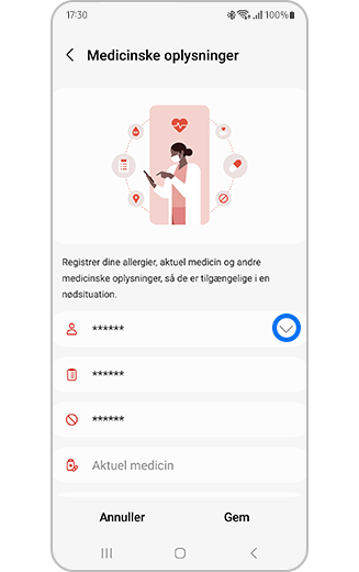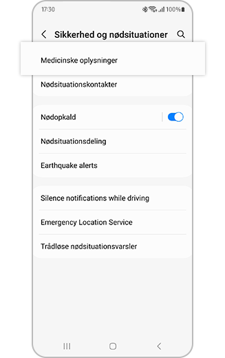 Vær sikker med din Samsung Galaxy-telefon ved at oprette en nødsituationskontakt og registrere medicinske oplysninger, så det er nemt og hurtigt at komme til dem. Hvis der opstår en nødsituation, kan man bruge en Galaxy-enhed til at kontakte nødsituationskontakter og se vigtige medicinske oplysninger som hjælp i nødstilfælde.