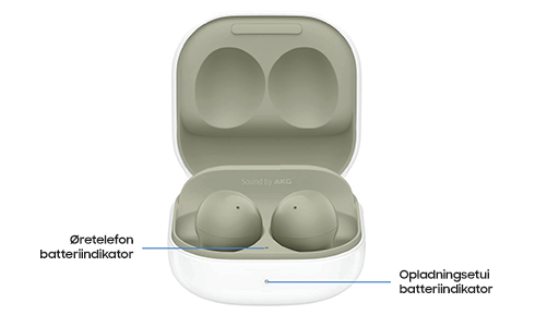 Bemærk: Du kan tjekke batteriniveauet for etuiet og øretelefonerne i Galaxy Wearable-appen.