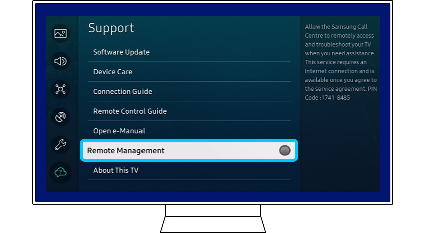Samsung Fjernsupport gør det muligt for en af vores specialuddannede kundeservicemedarbejdere at se og kontrollere din Samsung TV for direkte at hjælpe dig med dit produkt.