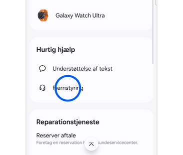 For at få god kundesupport, kan du få adgang til Samsungs Fjernsupport ved at downloade Smart Tutor-appen fra indstillingerne i Samsung Galaxy-enheden, Samsung Members-appen eller fra menuen "Kontakt os" i andre Samsung-apps.