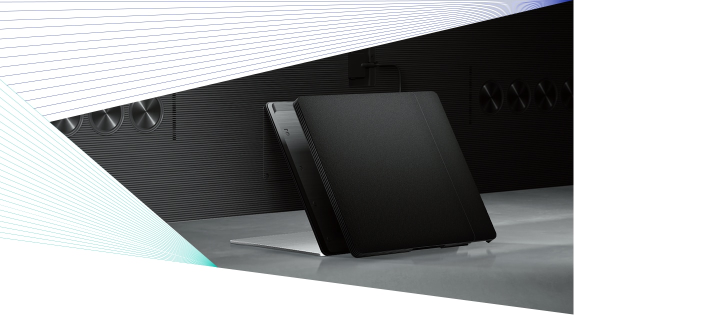 Vi har ikke kun gjort vores One Connect-løsning mere kompakt, vi har også ændret dens design, så den kan skjules bag TV'et eller placeres nydeligt i den ene side.