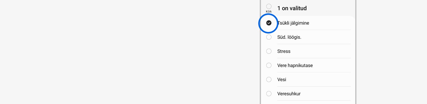 NB! Kui tsükli jälgimine on nutitelefonis seadistatud, saab neid andmeid vaadata ka kellamudelites alates versioonist Watch4.