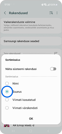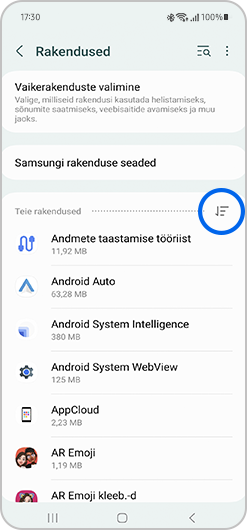 3. samm. Pärast rakenduseikooni vajutamist ava rakenduse seaded.